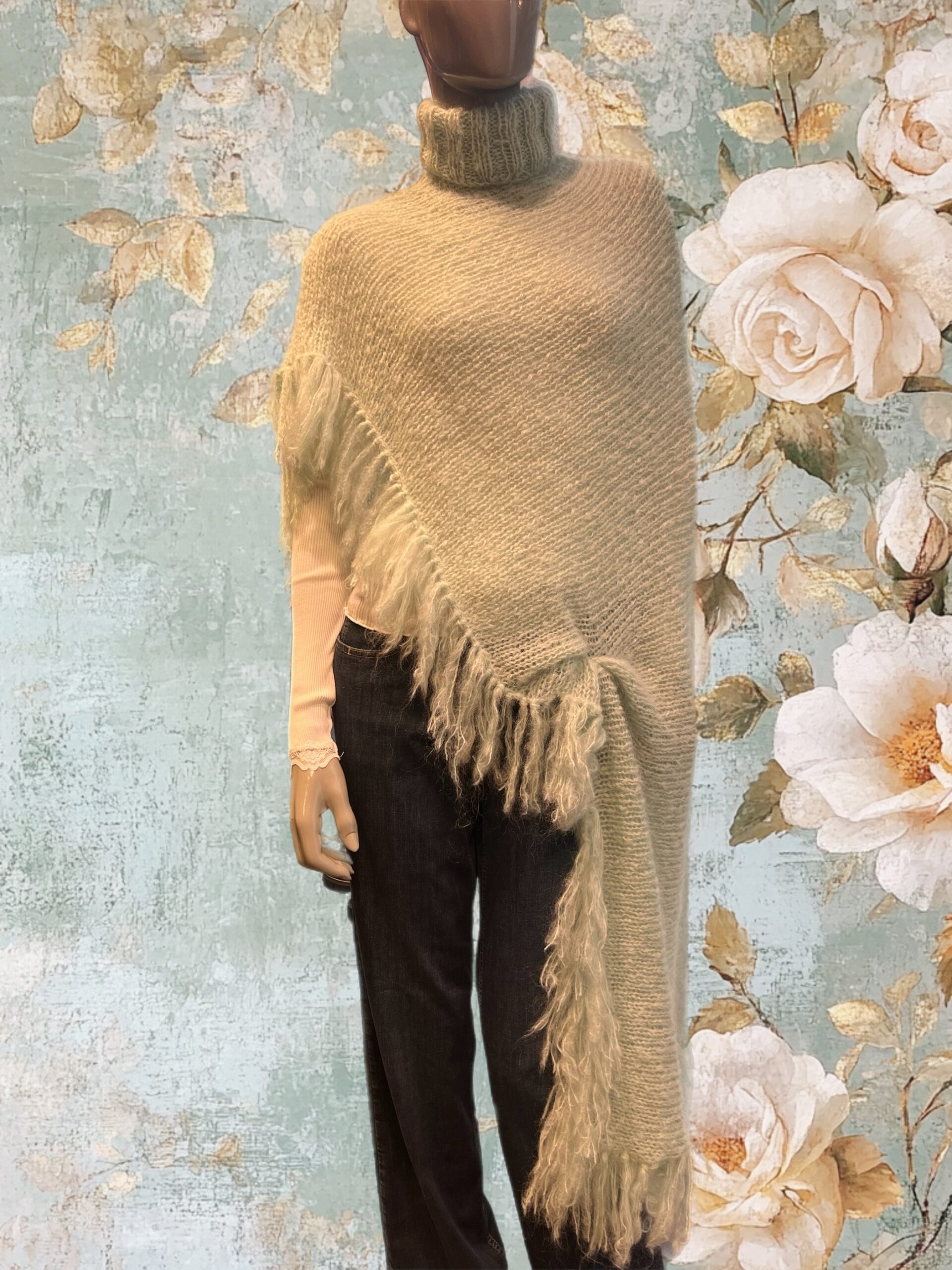 Published 12. februar 2026. Size: 1920 × 2560 in Oriente Poncho sennepsgul håndstrikket ull